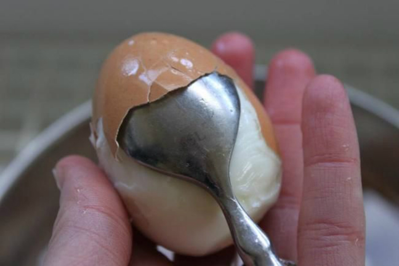 Wystarczy po wyjęciu z lodówki włożyć jajko do gorącej wody na 6 minut, po których należy zanurzyć je w lodowatej wodzie. W obraniu tak przygotowanego jajka pomoc może poprzednia sztuczka.