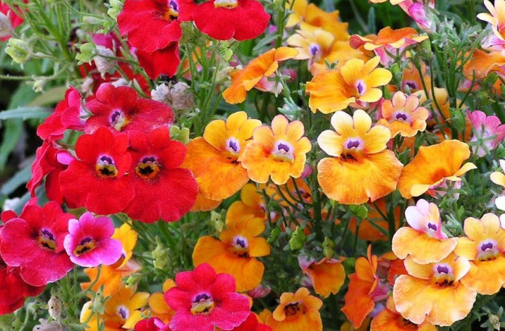 - Nemezja powabna – kolorowa, długokwitnąca i świetnie radząca sobie zarówno w słońcu, jak i w półcieniu.